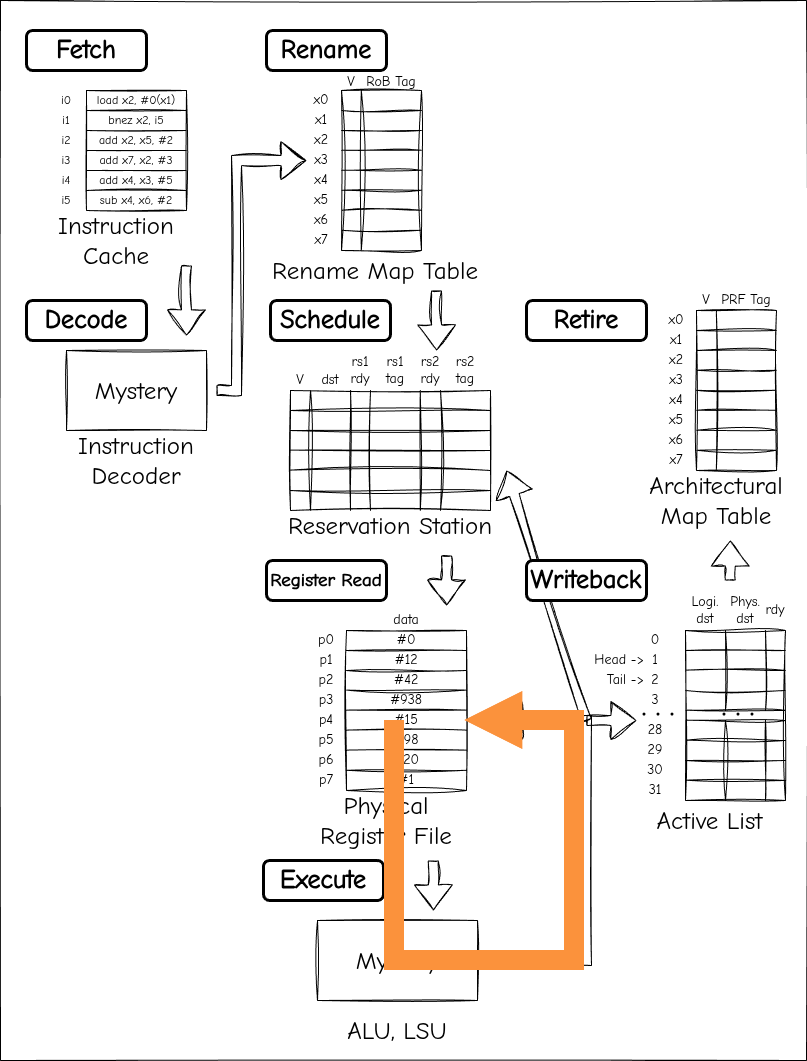 - 若い命令をアクティブリストにコミットするためにヘッドポインタをインクリメント(deplete the instruction windowって書いてるけど意図がよくわかんないっす)
